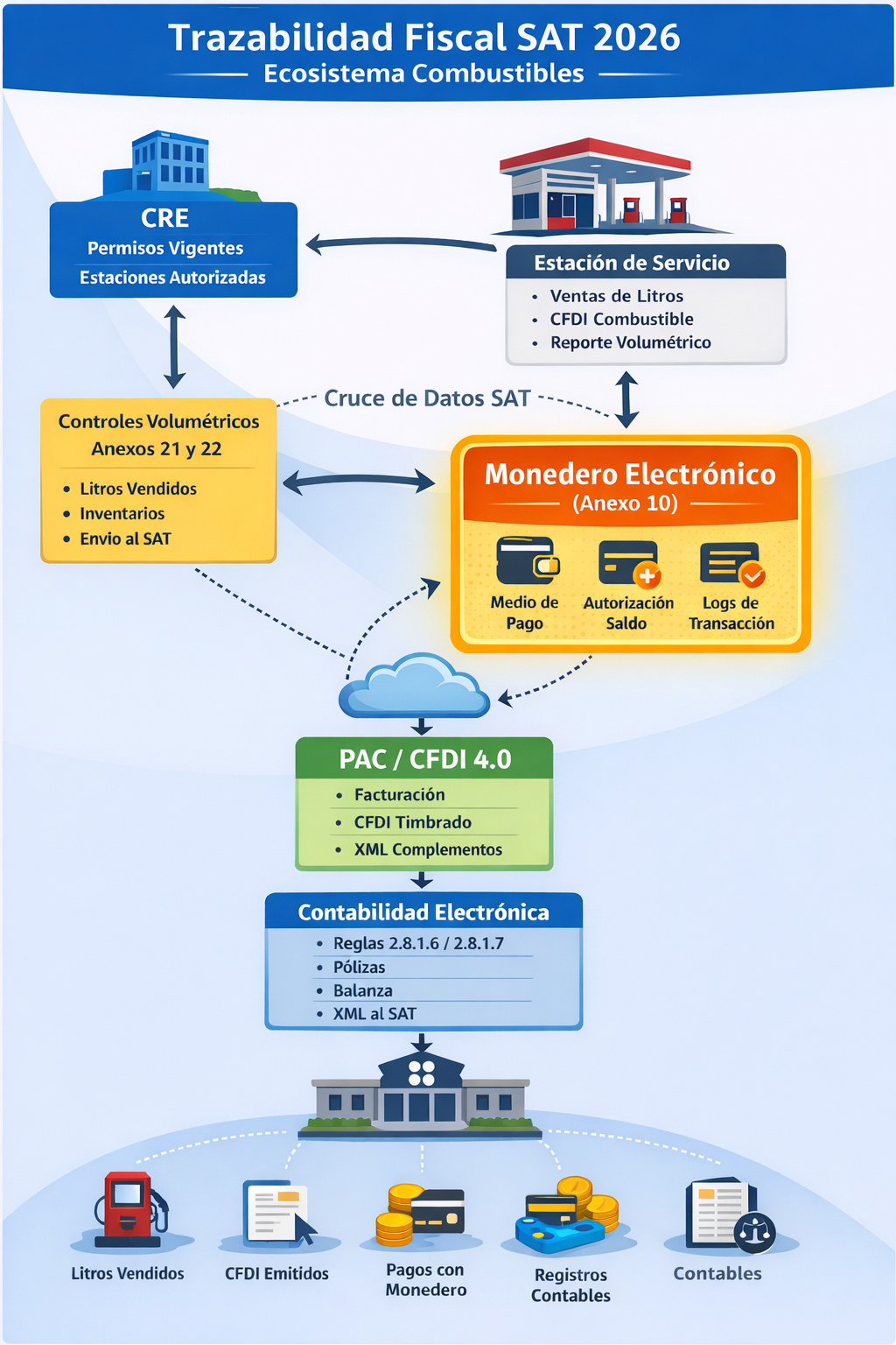 Diagrama conceptual técnico-regulatorio SAT – Ecosistema Combustibles 2026